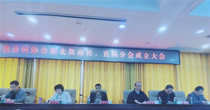 成立大会上,湘北散曲社首任社长周峰作主题报告,阐述了散曲社成立的背景、宗旨及未来工作计划,强调将致力于散曲的创作、研究与推广。直属分会社长杨必芳随后发表讲话,表达了团结会员、积极推动基层诗词曲创作发展的决心。华容县诗联分会代表郝庆华、曾建美、赵元珍分别致辞,对湘北散曲社和直属分会的成立表示热烈祝贺,并期待未来加强合作,共同繁荣地方文化。