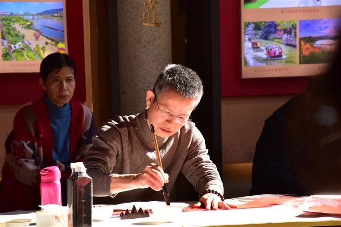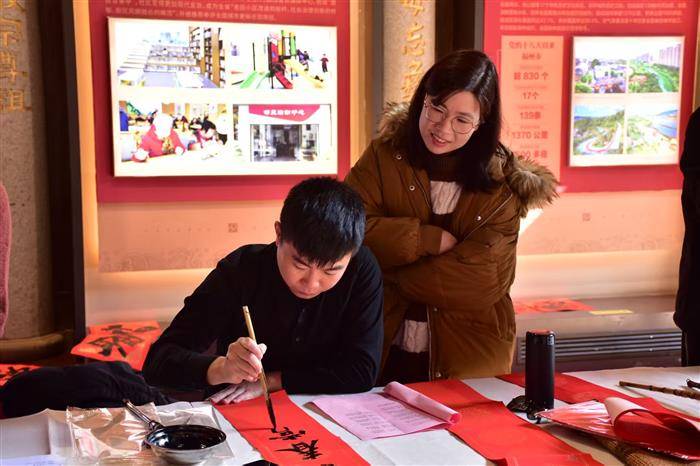 福州市台江区诗词楹联学会汪金铿、朱志民和福州市台江区书法家协会唐芯、林昆仑、黄泽胜等五位书法家携手国货路小学的小朋友们,共同组成 “大小书法家” 阵容。大家铺展红纸、饱蘸浓墨,一笔一划细细书写,“福马迎新”“平安喜乐”“吉祥如意” 等饱含新春期许的美好祝愿,随着笔墨流转跃然红纸之上。