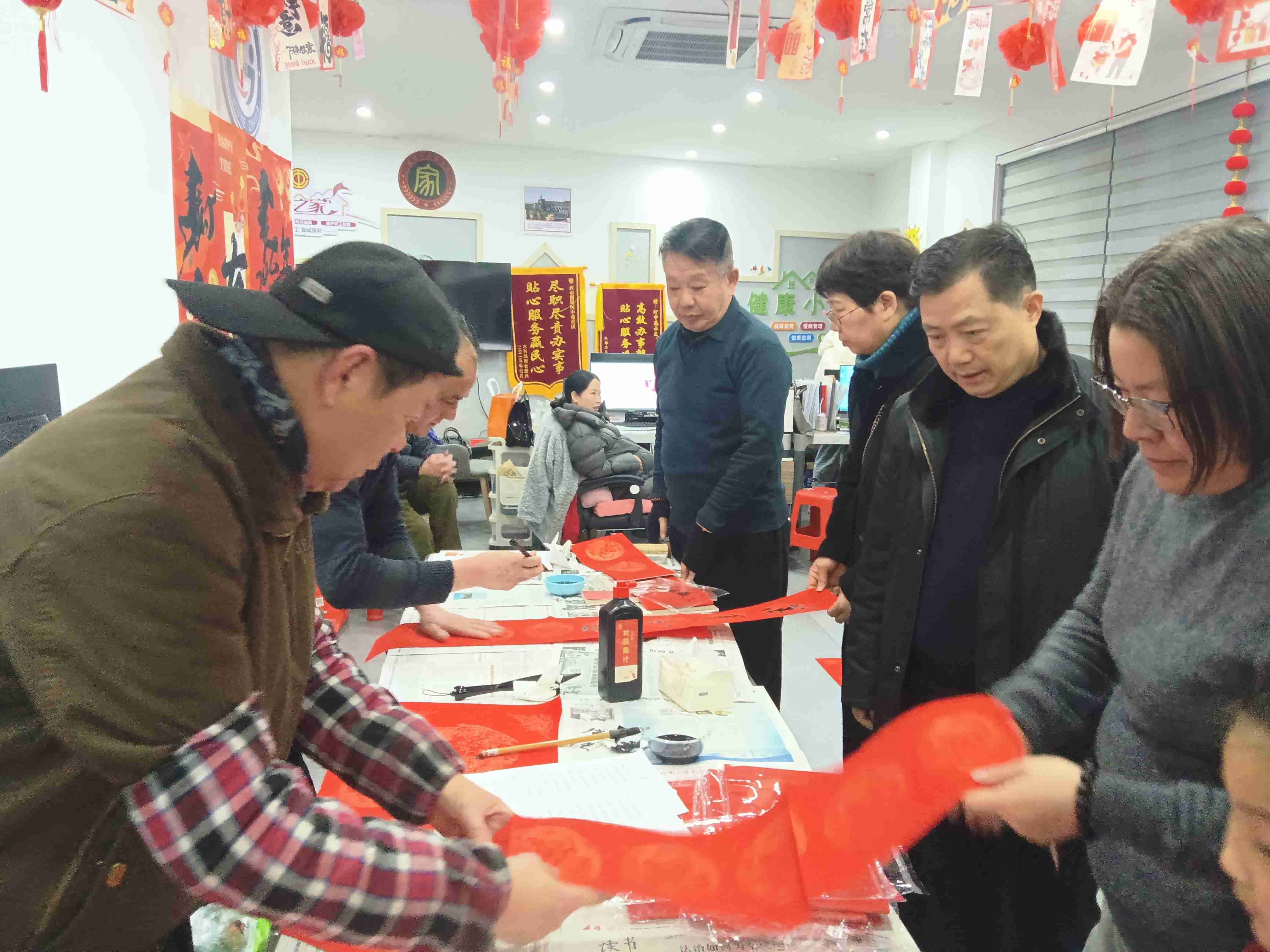 紧接着,活动转为热闹欢快的文化惠民专场。学会联合信州区老年书画协会的书法老师们,在社区摆开书案,现场挥毫泼墨,免费为居民书写并赠送春联。“龙腾盛世千家喜,春满神州万物荣”、“和顺门第增百福,阖家欢乐纳千祥”……一副副笔力遒劲、寓意吉祥的春联在老师们笔下诞生,浓浓墨香伴随欢声笑语在空中弥漫。居民们纷纷围拢,或挑选心仪联句,或驻足欣赏书法,现场气氛热烈,年味十足。红红的春联映照着居民喜悦的脸庞,也将新春最美好的祝福送入千家万户。
