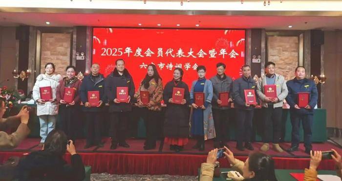 12月21日,六安市诗词学会会员代表大会暨2025年年会在紫荆花怡养小镇新址举行。安徽省诗词学会顾问、辞赋工委副主任金长渊,省炳烛诗书画联谊会副会长陈敏、祖建,安徽省诗词学会常务理事、庐州文专委会长李朝晖等省市级嘉宾莅临指导。学会领导班子与全市会员代表齐聚一堂,回顾历程、共绘蓝图,会议在庄严喜庆的氛围中完成各项议程。