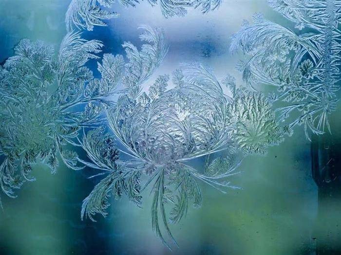 窗冰花神工妙手绘丹青,闪亮玻璃巧画屏。