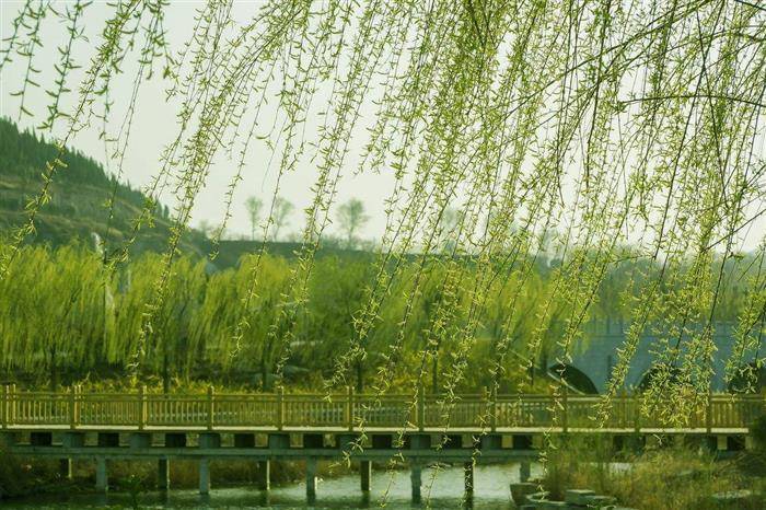 柳滹沱春水碧于天,细柳垂波荡晓烟。