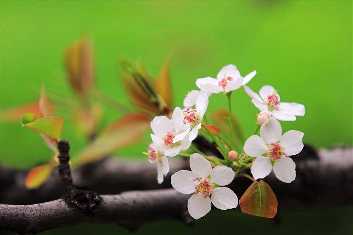 梨花开春风拂过秀花坊,万簇翩翩带露香。