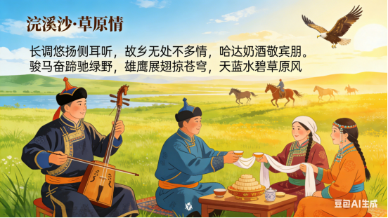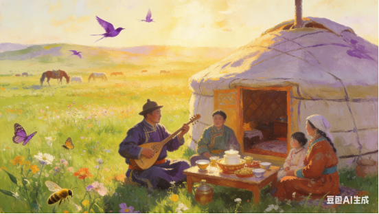 蒙族长调悠扬,奶茶美酒飘香。游子荣归故里,温情汇聚毡房。