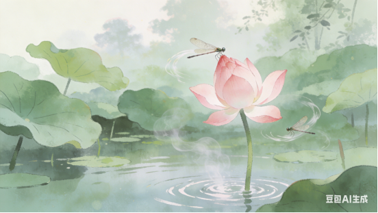 风摇倩影蜻蜓戏,洒向池边缕缕香。
