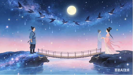 每逢兰夜团圆日,鹊架仙桥话旧缘。
