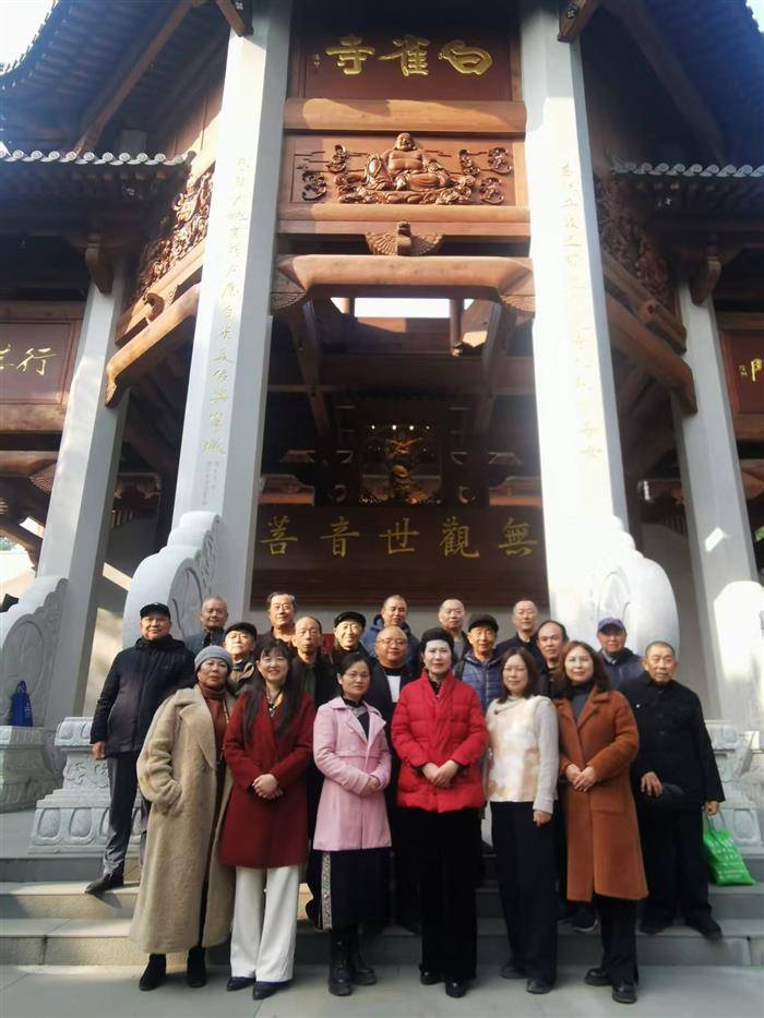 活动尾声,会员们合影留念。古刹匾额下,众人笑容洋溢,冬装色彩斑斓,为此次采风定格下温暖瞬间。学会理事肖雪梅表示:“此次采风将自然感悟与理论学习结合,既拓展了创作视野,也增强了学会的凝聚力。”