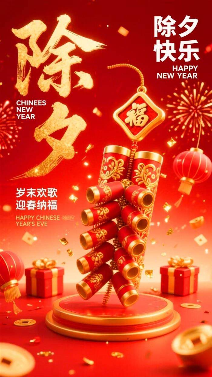 话初夕爆竹声声喜气扬,春风入户暖华堂。