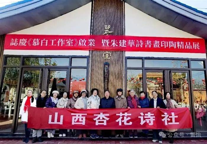 11月19日,初冬晴暖。中华诗词学会女工委副主任、山西诗词学会副会长兼女工委主任、山西杏花诗社社长张梅琴携十数位诗友,赴刘家堡慕白工作室怡韵轩雅集。山西诗词学会名誉会长时新老师随车而至,早备明代大学士王琼诗稿。案前挥毫两小时,笔走龙蛇,为众姐妹书就十五幅佳作。慕白执印轻盖,朱红印泥映素宣,墨韵朱痕相映成趣。诗友们或倚案赏字,或随琴音浅唱,或踱至室外明清民居旁留影,笑意盈盈,漫在初冬的风里。