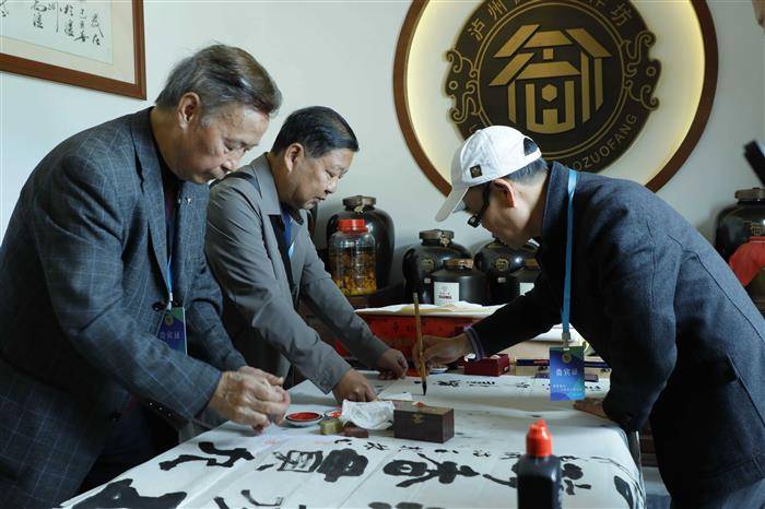 在气氛热烈的活动现场,毛必成会长向酒厂赠送了会刊《江阳诗词》及个人书画集;会员周元原、隆久军向酒厂赠送了国画作品。会长毛必成、副秘书长陈力及兴致盎然的诗人们即兴赋诗、填词,作品由王乾林、万东华、皇甫翰深三位书法家现场泼墨挥毫,书写成卷赠予企业珍藏。部分诗人还以传统吟诵的方式抒怀寄意。
