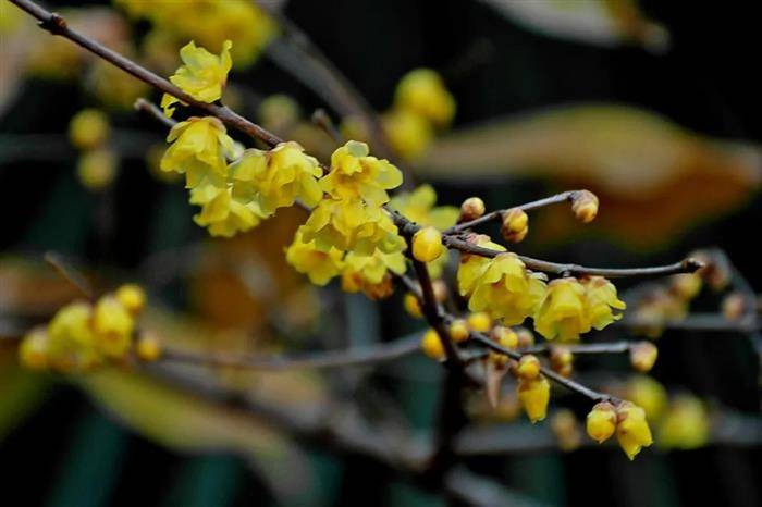 蜡梅花开曾拜什坊院,蜡梅始绽香。