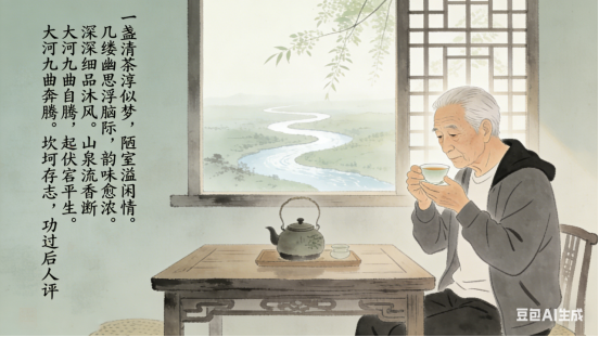 几缕幽思浮脑际,起伏跌宕平生。大河九曲自奔腾。坎坷存远志,功过后人评。