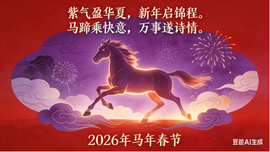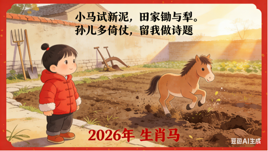 旧岁尘劳融雪片,新元身健伴梅花。马蹄轻快踏烟霞。