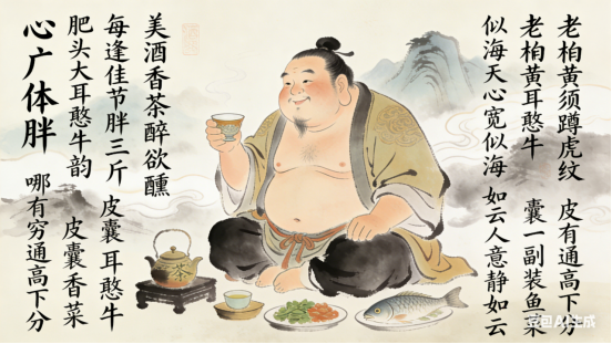 美酒香茶醉欲醺,每逢佳节胖三斤。