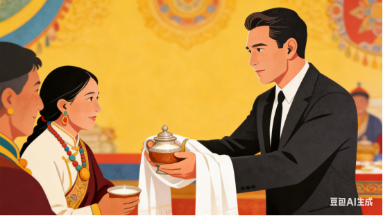 长调悠扬侧耳听,故乡无处不多情。哈达奶酒敬宾朋。