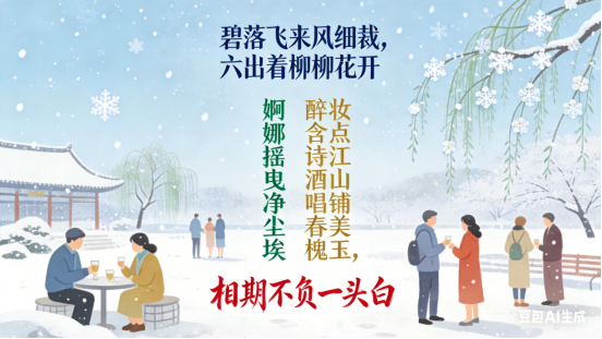 妆点江山铺美玉,醉含诗酒唱春槐。相期不负一头白。