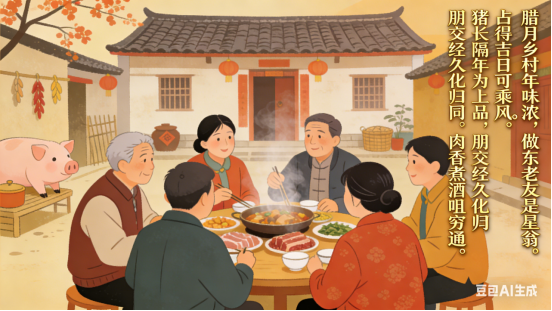 腊月乡村年味浓,做东老友是星翁。占得吉日可乘风。