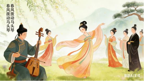 玉雪轻浮原上草,春风拨动马头琴。墨香鸿影入晴云。
