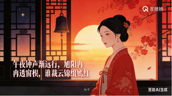 午夜钟声渐远行,旭阳冉冉透窗棂,谁裁云锦缀嫣红。