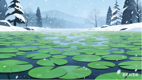 冷气袭来入小寒。莲花池内睡莲鲜。红莹交映染无边。