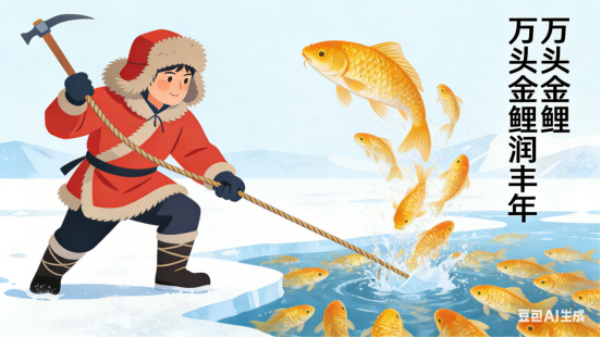 千尾银鳞腾旭日,万头金鲤润丰年。北风入耳笑言欢。