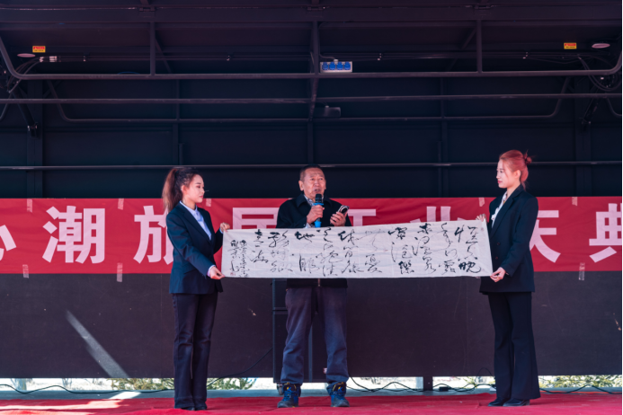 庆典仪式上,贾志义会长致贺词,并向公司赠送了奥奇先生书写的贾志义会长贺诗书法作品。边美英女士为庆典活动献歌《山丹丹开花红艳艳》。贾志义、奥奇、王利田、李涛、辛永奎为庆典活动剪了彩。下午贾志义会长一行在凉城县文联张利宁主席的陪同下又去永兴镇与冰思泉水厂观看了社火活动与秧歌表演。