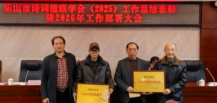 会议还对2025年度先进集体和优秀会员进行了表彰。其中,夹江县分会、高新区分会被评为先进集体;许志强、庞超群、章宗强、胡荣华、胡振刚、李雪梅、付素华、虞文富、王志龙、王英等10名会员被评为优秀会员(排名不分先后)。此次表彰旨在激励全体会员不忘初心、再接再厉,在诗联创作与文化传承的道路上持续前行、再创佳绩。