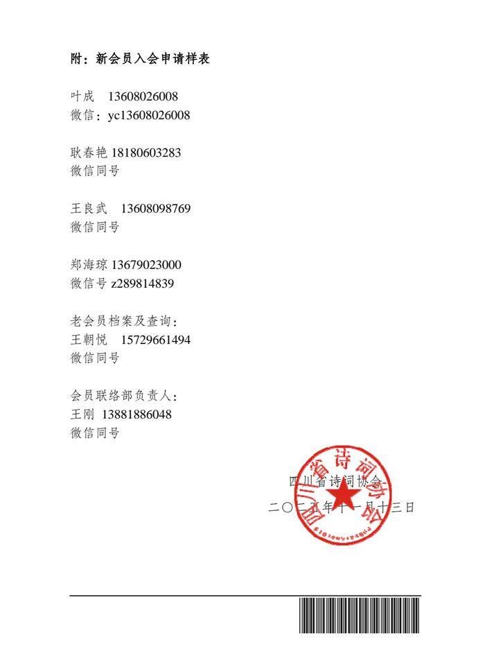 (2)申请入会也可与四川省诗词协会会员联络部直接联系。