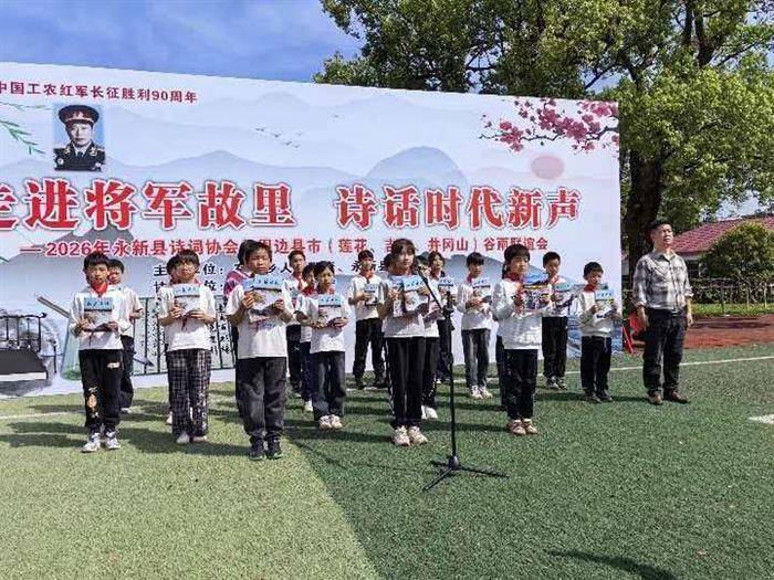 暮春序暖,谷雨初临,杜鹃灼灼,布谷和鸣。4月25日上午,永新县“走进将军故里,诗话时代新声”谷雨联谊诗会在在中乡龙飞虎将军故里隆重举行。庐陵诗词学会领导、周边县市诗友代表,与本县诗词协会会员、当地师生代表齐聚一堂,以诗为媒,以文会友,共赴一场诗意雅集。