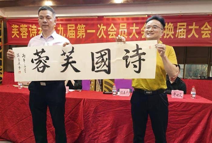 芙蓉诗社第八届会长李治云在会上作工作报告,随后,大会严格按照章程规定,选举产生了芙蓉诗社第九届理事会、监事会。罗乃坚当选为芙蓉诗社新一任会长。广东中华诗词学会副会长侯立兵和花都区文学艺术界联合会主席周波、岭南诗社副社长廖日文等领导嘉宾出席会议并分别发表讲话。