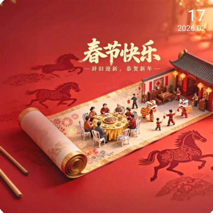 残岁辞霜送旧寒,新驹踏暖入春烟。几番行色晴阴过,一片初心岁月安。 烹玉饺,贴红联,欢声漫绕小庭前。眉间尽揽东风意,心向星河步步宽。
