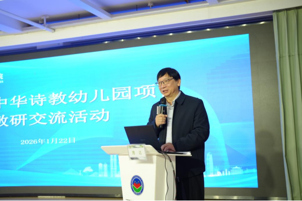 中华诗词学会副会长周达对活动成功举办表示热烈祝贺,并传递了学会对学前诗教工作的高度重视与深切期许。他谈到,习近平总书记在2026年新年贺词中强调“古韵国风成为年轻人眼中的‘顶流审美’”,中华诗词作为这种“顶流审美”的核心构成,承载着中华民族的精神密码与文化基因,在幼儿心中播下诗词的种子,打上中国优秀传统文化的底色,就是为了更好地筑牢民族文化传承和发展的根基。