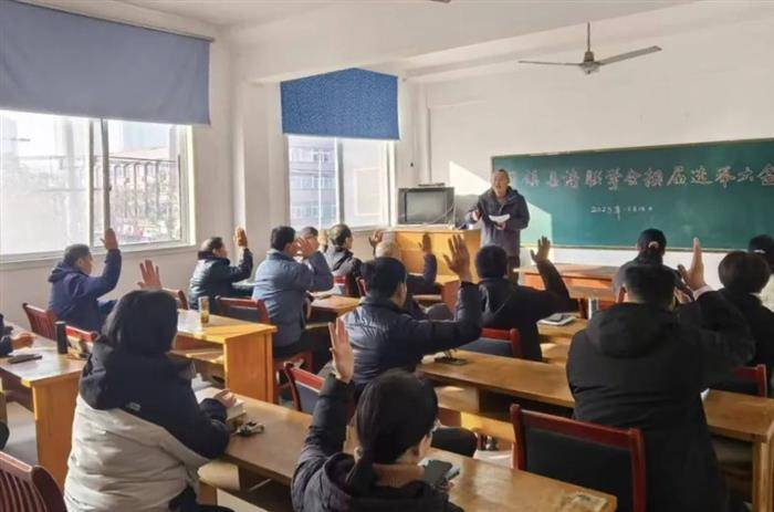 会议在民主、团结的氛围中,严格按照相关规定进行换届选举。苗蔡畅宣读了第七届领导班子拟任名单请示报告。县文联领导到会指导并宣读批复。经全体与会代表举手表决,张家民当选为新一届会长兼法人,朱晓军、刘磊、苗蔡畅、陈金花、孟国田、曹新功当选副会长,刘洋当选秘书长,吴全广、荀方当选副秘书长,所有候选人均获全票通过。