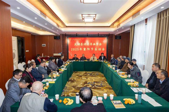10月28日,太湖县诗词书画学会在山里郎国际大酒店举办2025年重阳节茶话会。在家的学会历届老会长、副会长、理事,老诗人代表,特邀嘉宾,主管单位领导以及学会部分工作人员出席了此次活动。