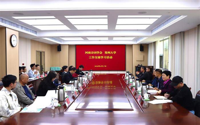 4月17日,河南诗词学会与郑州大学工作交流学习座谈会在郑州大学主校区综合管理中心举行。河南诗词学会终身荣誉会长何广才、会长马海盈、执行会长兼秘书长张志钦,河南省诗歌学会副会长牛冲一行与郑州大学党委常委、纪委书记、监察专员陈曦等齐聚一堂,围绕诗词理论研究、评论人才库建设、青年诗词人才培育、“中州诗人”评选等议题深入交流,共商河南诗词文化传承创新大计。