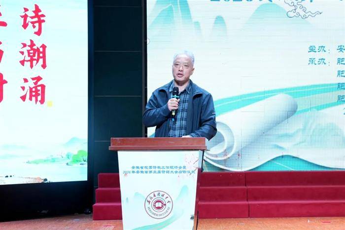 上午10时,会议在《诗经·郑风·风雨》的雅乐声中正式开幕。肥东县教体局党委委员、副局长谢梦霞致欢迎辞,介绍了肥东县以诗教深化素质教育的实践成果。省诗词学会副会长兼诗教工委主任陈虎山作诗教工作报告,回顾了2025年省诗词学会开展诗教工作取得的成绩和存在的不足,以及下一步的工作安排。