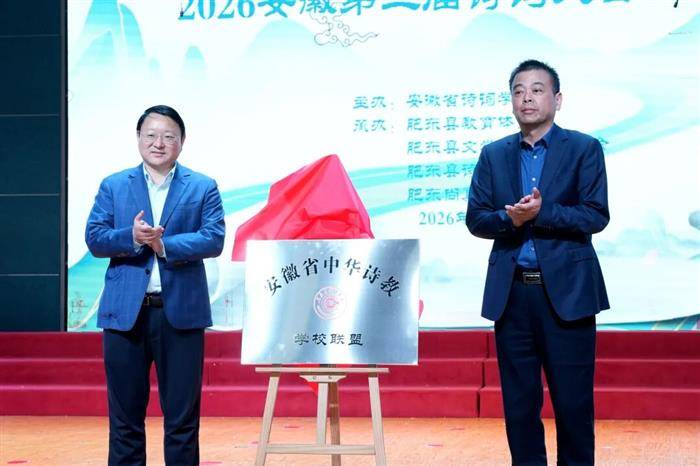 省诗词学会会长邹志高与肥东县委常委、宣传部部长吴明共同为“安徽省中华诗教先进单位学校联盟”揭牌。该联盟的成立,标志着安徽诗教工作从“单校探索”迈向“区域协同、资源共享”的新阶段。