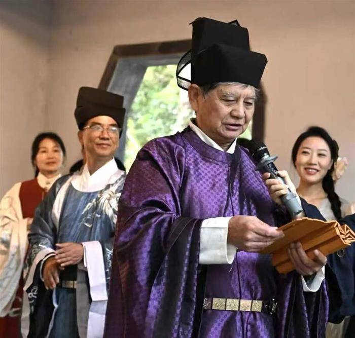 盘龙谷风景区董事长、永康市诗词学会会长徐小飞在致辞中,追溯了从舜帝耕读到沈约赋诗、陈亮论道的历史文脉,强调了盘龙谷是一处“天人合一”的诗意栖居地,并表示将持续深耕这一片山水,以山水之清气激荡时代新声,使其成为传承中华传统文化的一个小小驿站。