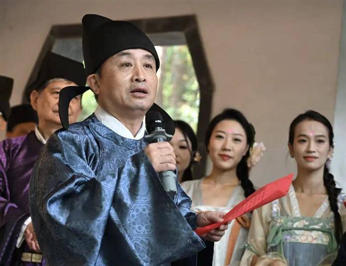 上午九点,游园赏秋拉开了活动序幕。象征着四时芳菲与天地生机的十二花神,引领一众嘉宾走进诗意盎然的盘龙谷秋日胜境。随后诗人们依次步入“曲水流觞”主会场。