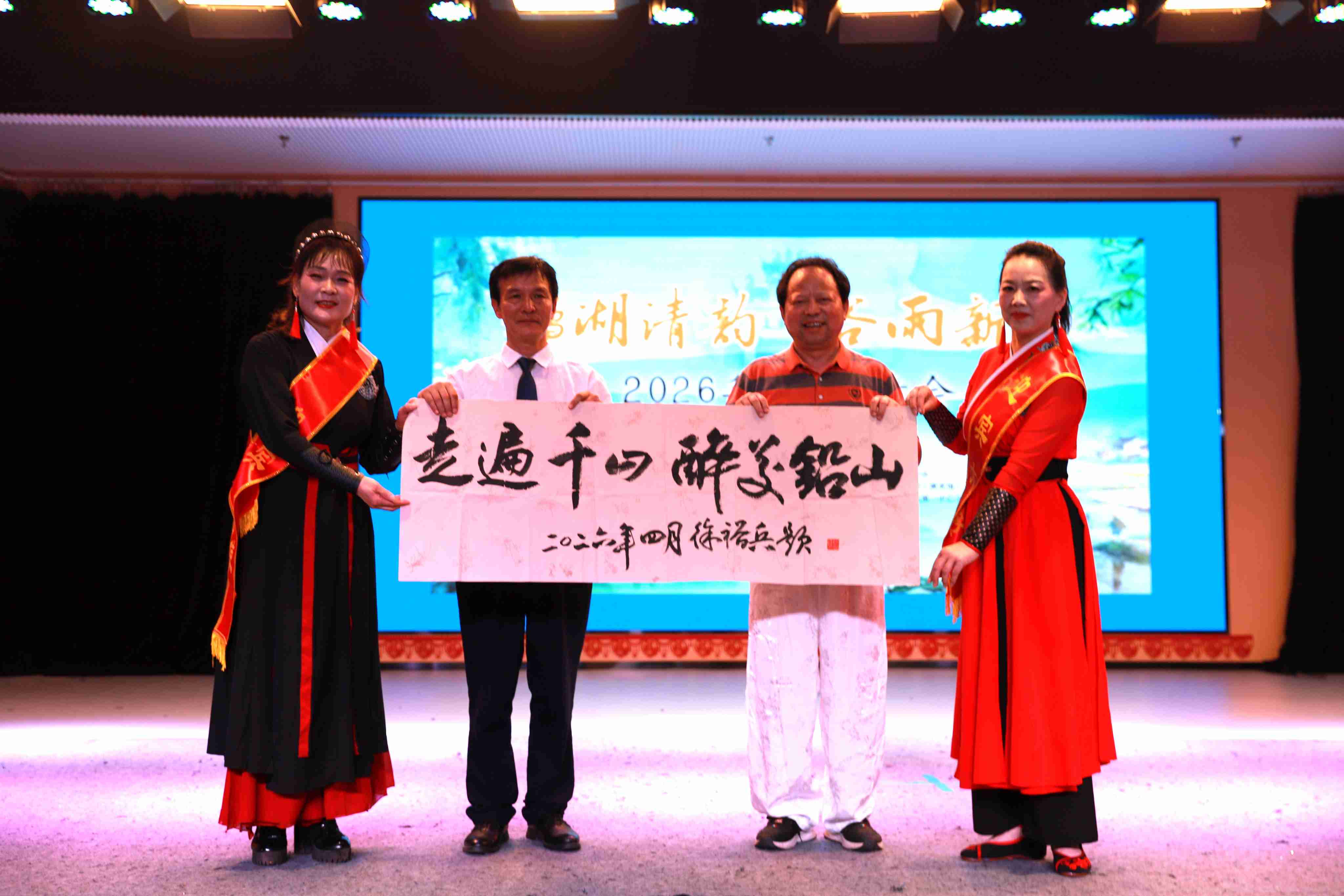 下午,诗词朗会与颁奖盛典在铅山新起的地标性文化建筑信江阁阁举行。喜庆欢快的暖场舞毕,上饶市社科联党组书记、主席卜庆铭宣布朗诵会开幕。徐裕兵、陈咏洁先后致辞。徐裕兵回顾了上饶市诗词学会的发展历程与成果,强调谷雨诗会作为江西特色文化品牌,是传承文脉、凝聚诗心的重要载体,鼓励广大诗词爱好者扎根时代、深耕生活,创作更多彰显上饶特色、传递文化力量的佳作。陈咏洁对诗会的召开表示热烈祝贺,向莅临现场的嘉宾与诗友表示诚挚欢迎,她指出铅山文脉绵长、诗风鼎盛,此次谷雨诗会落地铅山,是对铅山文化事业的肯定,希望以诗会为纽带,进一步擦亮铅山文化名片,推动诗词文化传承发展。