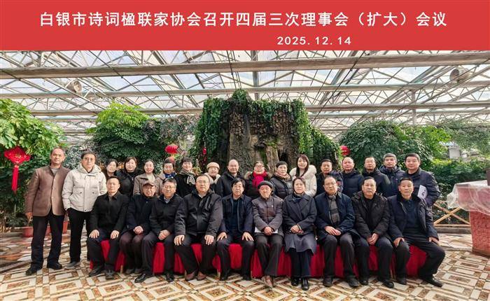 2025年12月14日,白银市诗词楹联家协会第四届理事会第三次会议(扩大)在水川绿洲山庄会议室召开。协会名誉主席、部分顾问、理事齐聚一堂,共同回顾过去一年来的工作,展望未来发展,为传承和弘扬中华优秀传统文化出谋划策。