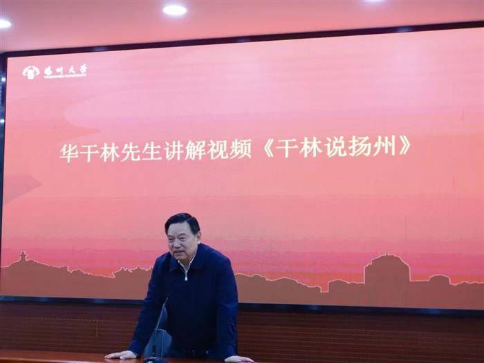 在主题分享环节,高校工委顾问、扬州知名文史学者华干林通过视频《干林说扬州》作了精彩讲解。他从“烟花三月下扬州”“二分无赖是扬州”等千古名句切入,梳理了扬州作为唐诗之路重要节点的诗城文脉,并结合城市遗迹与当代传承,生动诠释了古典诗词如何在千年古城中生生不息。