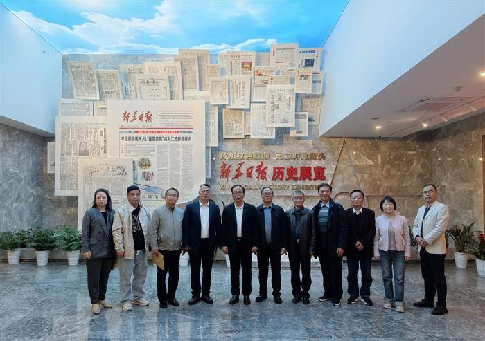 下午2时许,方诗韵一行抵达江苏新华日报社,受到江苏新华文投副总经理沈东、文化产业顾问周长富的热情迎接。双方首先在新华日报创始人周恩来铜像前合影留念,缅怀先辈精神,随后在沈东的陪同下参观了新华日报全媒体艺术馆和报史馆。馆内丰富的历史资料与艺术展品,生动展现了新华日报的红色基因与文化底蕴,为后续交流奠定了坚实的文化基础。