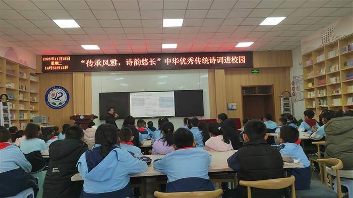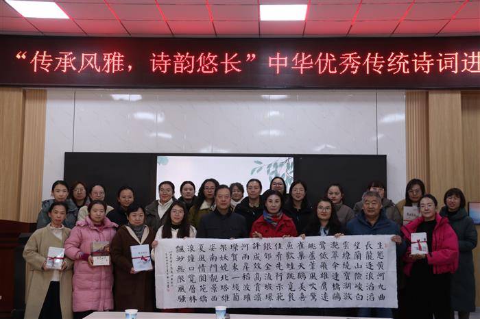 为深入贯彻落实银川市“千名作家联千村(社区)进千校”传承中华优秀传统文化行动的号召,11月18日,银川市诗词学会张美玲会长率领副会长张青、马利明,携着一缕翰墨书香,走进西夏区第十二小学,举办了一场内容丰富、意义深远的“诗词进校园”暨格律诗讲座活动。本次活动由西夏区十二小学副校长曹丹主持。除了讲课,更举行了隆重的赠书仪式,将精神的食粮与艺术的瑰宝馈赠予校园,为师生们带来了一场全方位的文化滋养。