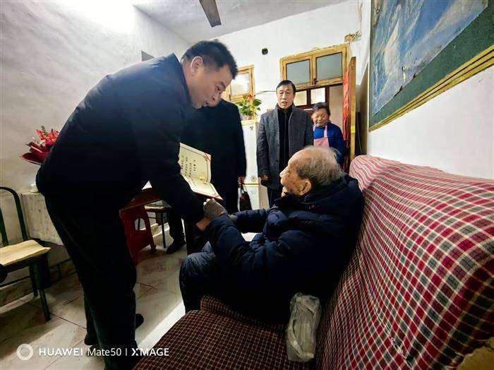 2026年1月17日上午,安徽省诗词学会会长邹志高、皖东文专委主任李德新和秘书长李文涛等,在明光市诗词学会书记陈文亮、会长王武亭等领导的陪同下,专程前往嘉山中学(原明光中学)家属院,看望明光市百岁诗人毛鲁先生。期间,省诗词学会邹志高会长受中华诗词学会委托为毛鲁先生颁发了中华诗词学会授予的“百岁诗翁”荣誉证书。 在为毛鲁老师颁发证书时,邹志高会长动情地说:“毛老师深耕诗词领域数十载,笔耕不辍、薪火相传,为诗词事业的传承与发展倾注了大量心血,作出了卓越贡献。衷心感谢您的坚守与奉献,期盼您在保重身体的前提下,继续以诗心为炬,为诗词文化的赓续发光发热。祝您福寿康宁!” 毛鲁老师精神矍铄,接过证书时满面欣慰。他深情致谢:“这份‘百岁诗翁’的荣誉,是中华诗词学会对我毕生诗词追求的认可,谢谢省、市诗词学会各位领导一直以来的关怀与厚爱。我虽已百岁,但对诗词的热爱从未消减,今后仍将尽己所能,为诗词文化的弘扬添砖加瓦,不负各位领导的信任与期许。” 毛鲁老师还向在场人员赠送了自己的诗集。毛鲁老师对诗词文化的坚守与热爱,让在场的每个人深受感动和鼓舞,更加坚强了大家传承诗词文化的信心和决定。