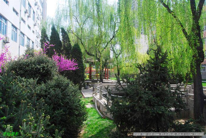 艳阳泼洒夭桃繁。一院春容舒展。