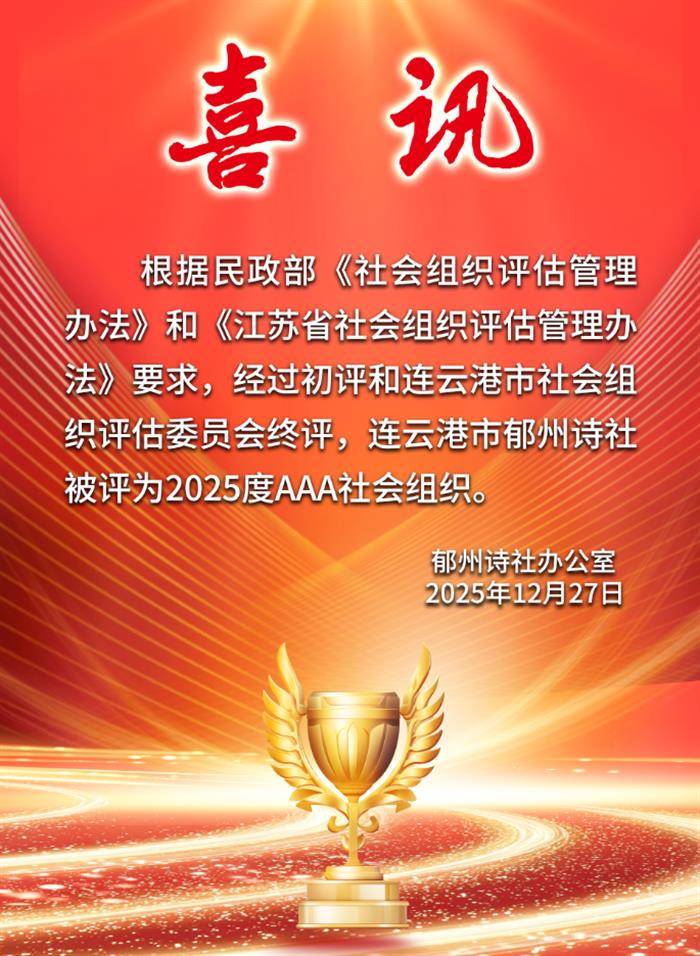 连云港市郁州诗社成立于2003年9月,是经民政注册的合法文化团体。郁州诗社是以传统诗词为主,包含书,画,印等国粹在内的多元化文化团体。诗社严格执行国家对非企业社团政策,依法依规开展为社会提供正能量的各项活动。 郁州诗社坚持贯彻党的文艺工作方针。以传承,弘扬中华优秀文化为宗旨,以做“人民的诗人”为追求目标,倡导“理念结社”,并以此作为社建工作的思想基础。 二十年来,郁州诗社致力于为社会主义文化市场提供优良的精神产品,把讴歌伟大的党,伟大的祖国和广大劳动者作为历史责任,把敬业奉献精神为弘扬诗文化的至高境界。把建社新时代,新诗社当做神圣的历史使命。经过不懈努力,目前郁州诗社已拥有12个下属分支机构,8种不同专业类别的内部交流刊物,年印刷出版5万余份(册),在册社员超百人,其中中华诗词学会会员67人。现在的郁州诗社正朝着一流大型的文化社团行列稳步迈进。 “旅人倚征棹,薄暮起劳歌。笑揽清溪月,清辉不厌多。”郁州诗社正以饱满的热情迎接中华民族的伟大复兴。我们脚踏实地,拓宽视野,增强文化自信,力争做具有“郁州”印记的新时代人民诗人。 “云台山不是最大的山”,郁州诗社将砺志创新,不负众望,驾乘“郁州号”航船冲出海州湾,劈波斩浪驶入太平洋,为建社具有新时代特色的一流社团而奋斗!
