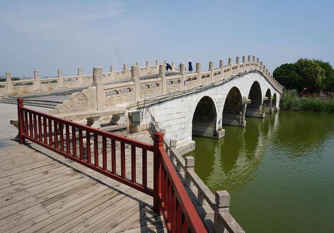 碧水虹桥人入画,曲廊亭榭鸟鸣园。