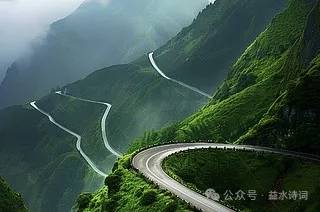 虹跨清波,云缠玉带,千峰路网穿青霭。标旗指处变通途,匠心铺就山河改。