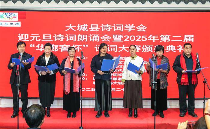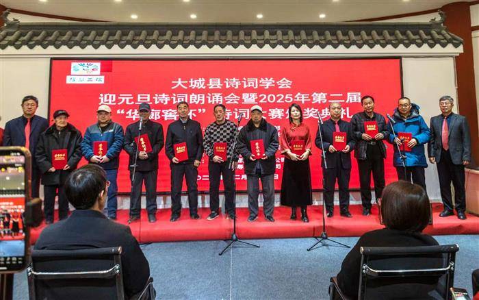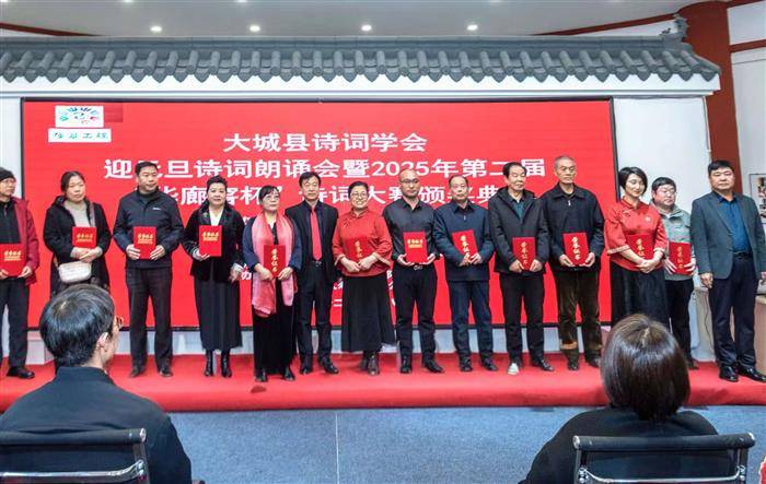 古韵新风颂盛世,诗情画意迎新年。2025年12月28日,由中共大城县委宣传部、县文联、县融媒体中心、县新时代文明实践中心联合主办,县诗词学会承办,河北华廊酿酒有限公司、利安人寿大城支公司协办的“迎元旦诗词朗诵会暨2025年第二届‘华廊窖杯’诗词大赛颁奖典礼”,在大城县文学艺术馆隆重举行,圆满礼成。